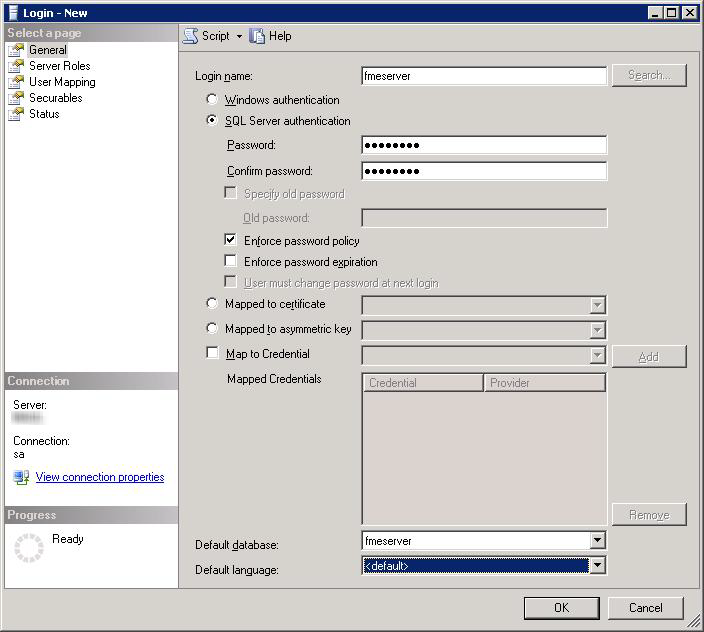 CREATE LOGIN fmeflow WITH PASSWORD =