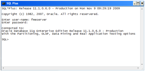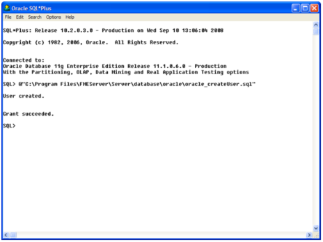 - When an FME Flow database user is created, you can connect to it by logging on again to SQL*Plus.