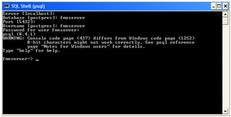 - Quit psql and log on as the FME Flow database user.