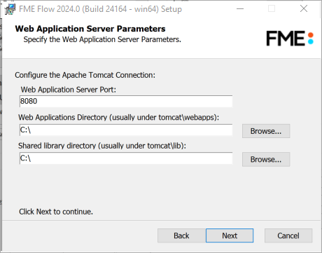 This selection is valid if you want to use the Apache Tomcat web application server provided with the installer, and have not provided your own under Provide a Web Application Server.