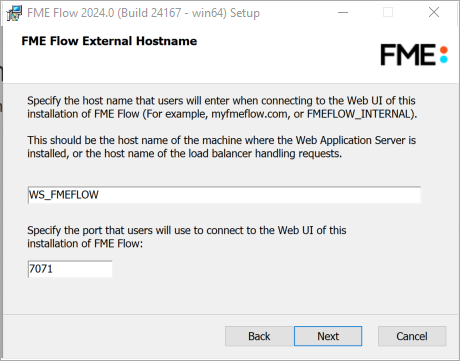 Specify the Web Application Server hostname through which users will connect to FME Flow.