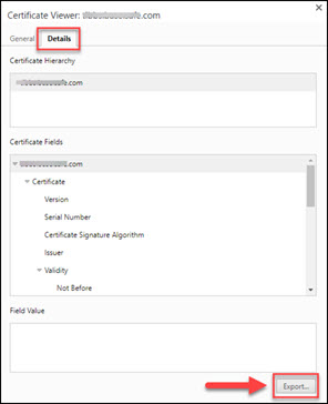 - (Optional) Export the certificate from the browser in base 64 format and import it into the cacerts trust store